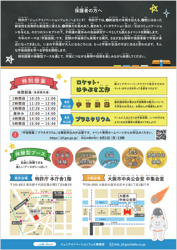 特許庁主催「ジュニアイノベーションフェス Space Innovation School(スペース イノベーション スクール)」